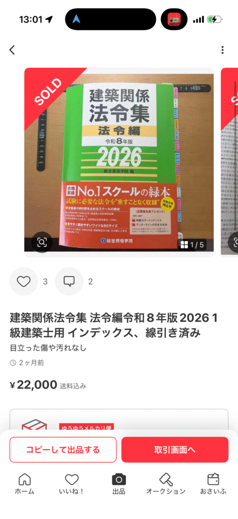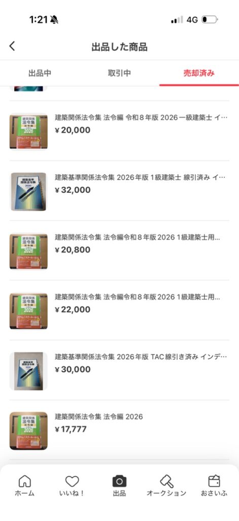 私は2025年の12月ごろ開始しました。お正月もあり1月2月の売れ行きは好調。1ヶ月にTACと総合資格が2冊ずつ売れていきました。1ヶ月に7.5万ほど稼げました!ただいま2ヶ月で15万ほどの収入を得ることができてます。