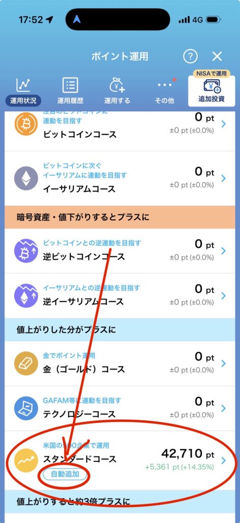 私はスタンダードコースを自動で投資する形式にしております。