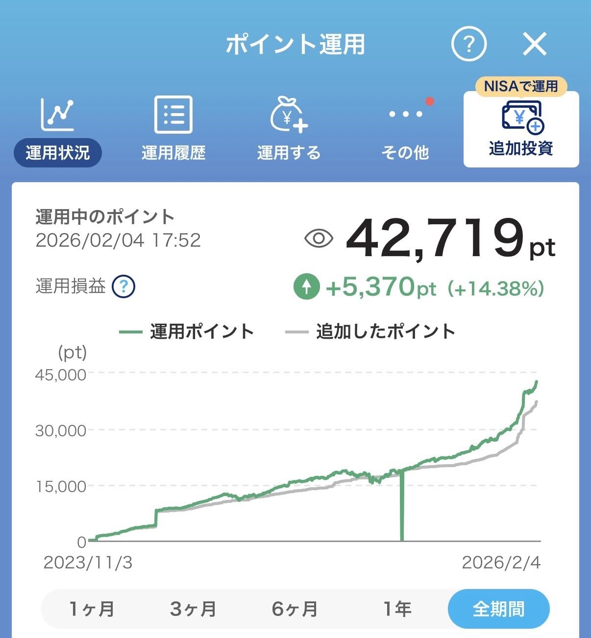 私は2023年11月からポイ活を開始し、約2年で42,322ポイントを貯めることができました。しかも、これらはすべて買い物で使うのではなく、PayPayポイント運用に回すことで、現在も資産として増え続けています。